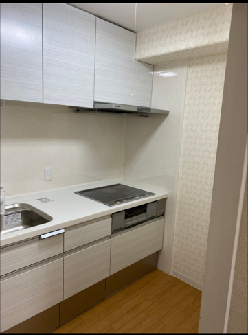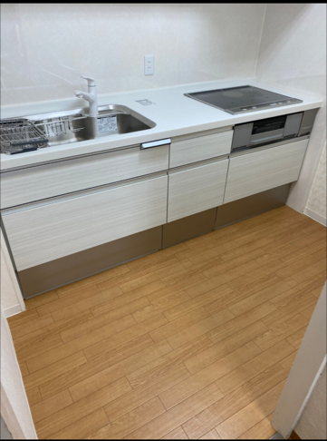 ポイント①:キッチン室という『隔離』された台所だったので、システムキッチンを明るい色合いにすることで、開放的な雰囲気に!当然、システムキッチン周辺の内装工事も併せてすることで、より華やかさを演出しました。