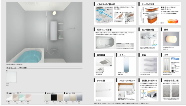 ②ユニットバス:リクシル リノビオP【1216サイズまで】※壁カラーは限定設定です。
