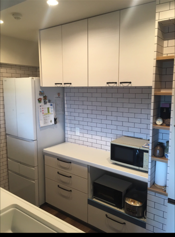 ポイント②:もともとあったキッチンの所には冷蔵庫と食器家電の収納スペースにすることができました!
