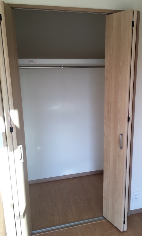 ポイント③:収納クロゼットもスッキリと改造。クロゼット内部は「ハンガーパイプ付き枕棚」の新設のみで、下の空間は自由に収納してもらえるフリー空間に。今ではホームセンター等で機能的収納グッズが充実しているので、住む方がお好きな組み合わせで納められます!